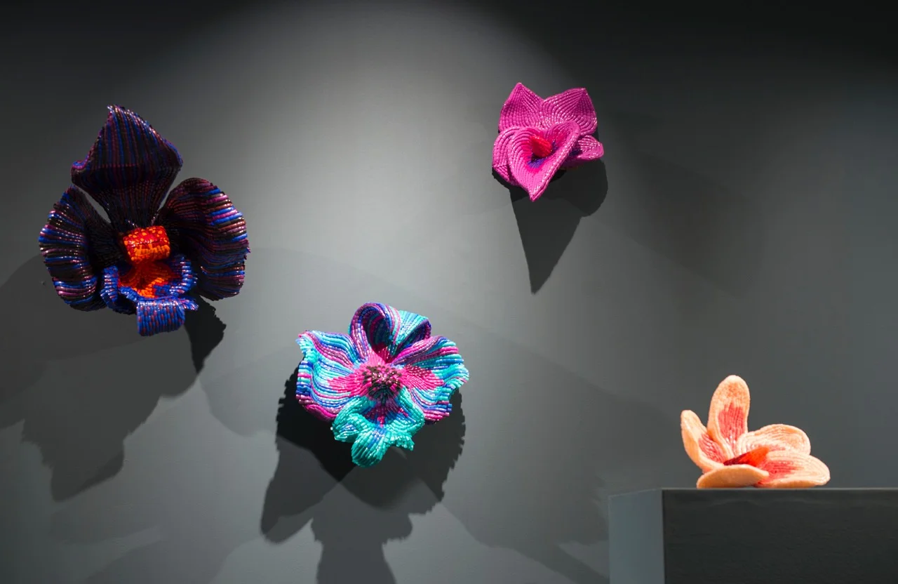 Lady Garden plays with the cliché of the flower as a symbol of femininity and innocence, however Goodman’s flowers have cavernous throats and protruding tongues and create an uncomfortable push-pull between the seductiveness of the shiny, slick flower forms and the visceral, abject nature of the false nails from which they are made.